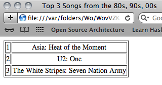 a list of ranked song titles and produces a list representation of an HTML